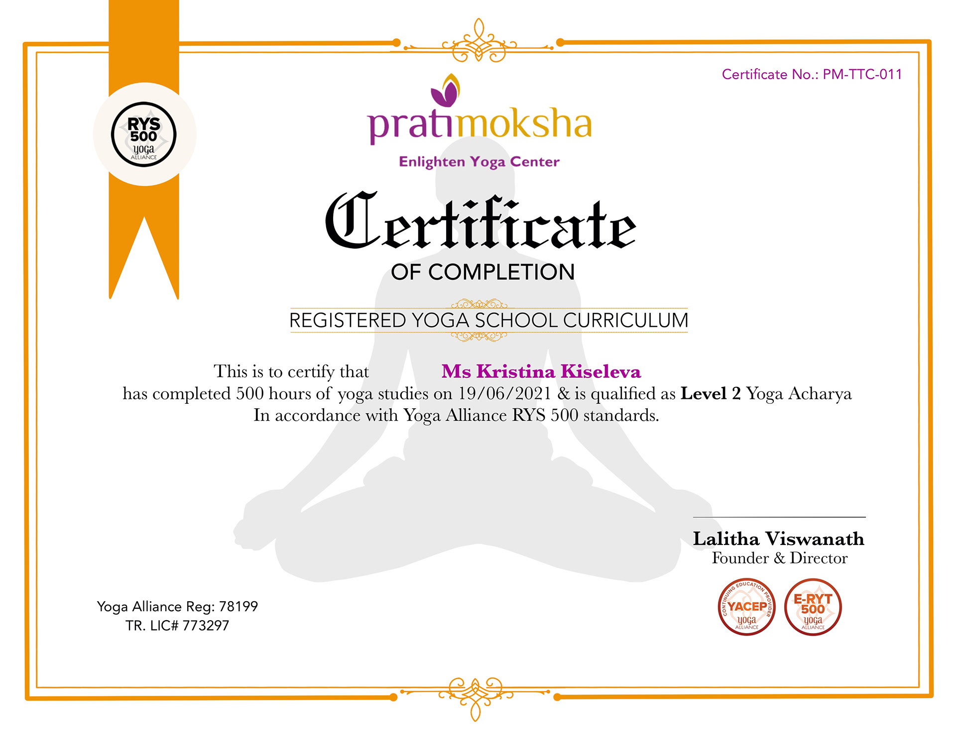 Enlighten Yoga Centre also request course material, such as certificates (Above).